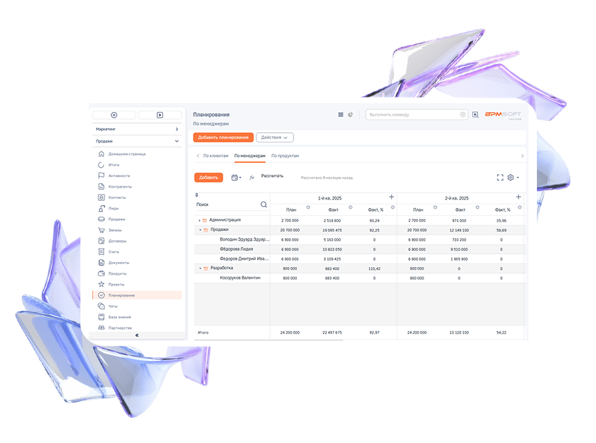 Управляйте процессами (BPM), клиентами (CRM)